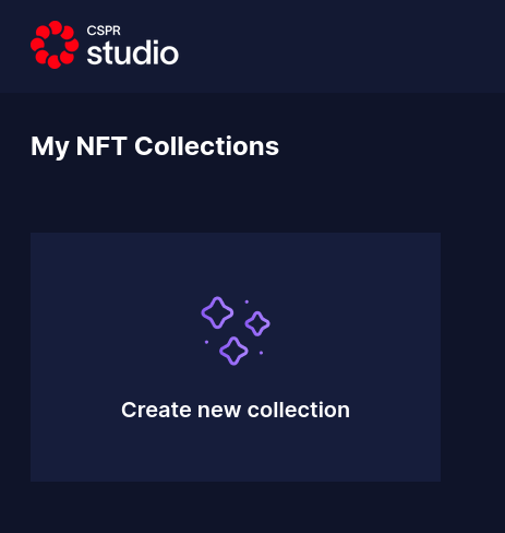 Note: You can also create a new collection on CSPR.studio, see details [here](https://docs.cspr.market/create-your-collection#creating-an-nft-collection).
